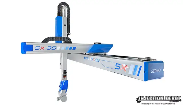 These robots installed on the IMM can be used for unloading and processing parts; they can be located at the end of the IMM to perform post-processing.